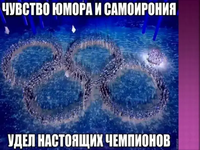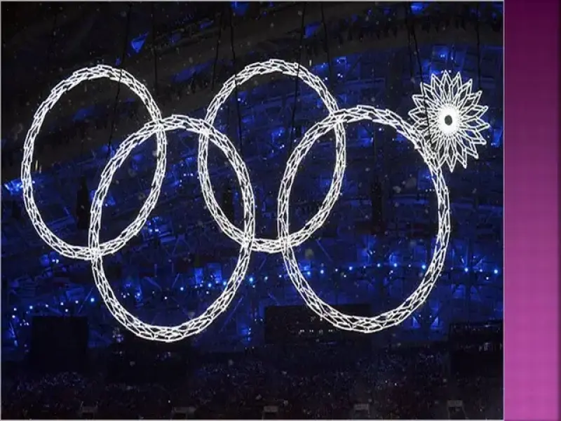 В конце концов четыре группы танцоров встали в четыре олимпийских кольца, а пятая - сбилась в круг, изображая кольцо, нераскрывшееся на открытии 7 февраля. (слайд 32)