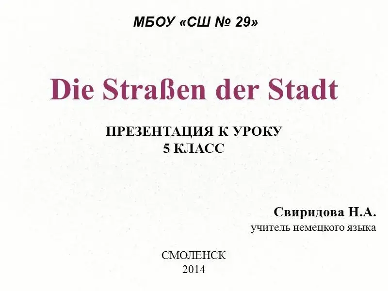 Урок немецкого языка по теме "Улицы города". 6-й класс