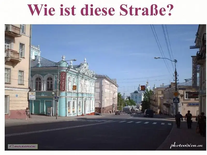 Wiederholen wir die Wörter und Possesivpronomen im Spiel Опроспослеигры: Wie ist die Straße von.... ?