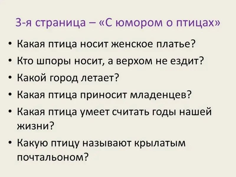 Учитель: Сегодня мы отправляемся в гости к птицам - нашим пернатым друзьям. И неважно, что одни живут в лесу, другие - в поле, а третьи - на лугу. Сегодня мы их собрали всех вместе.