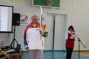 Ведущий 2: Ребята! Сегодня к нам на праздник прибыл почетный факелоносец - ставропольчанин, спортсмен, Иорин Алексей Михайлович. Встречайте!