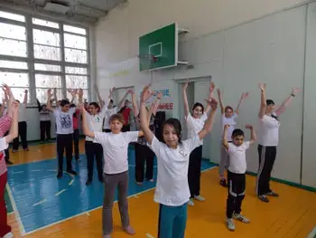 - Утренняя зарядка для учащихся и педагогов школы.