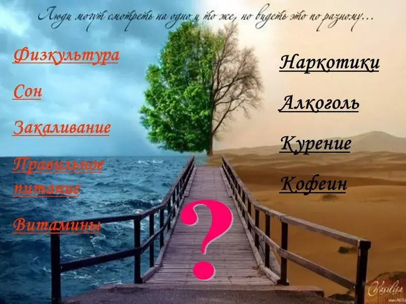 Учитель. Поэтому цель нашего урока - не только получить представление о том, что такое здоровый образ жизни, но и задуматься о необходимости быть здоровым. Прежде чем я предоставлю возможность для выступления каждой группе, давайте выясним: что такое здоровье?