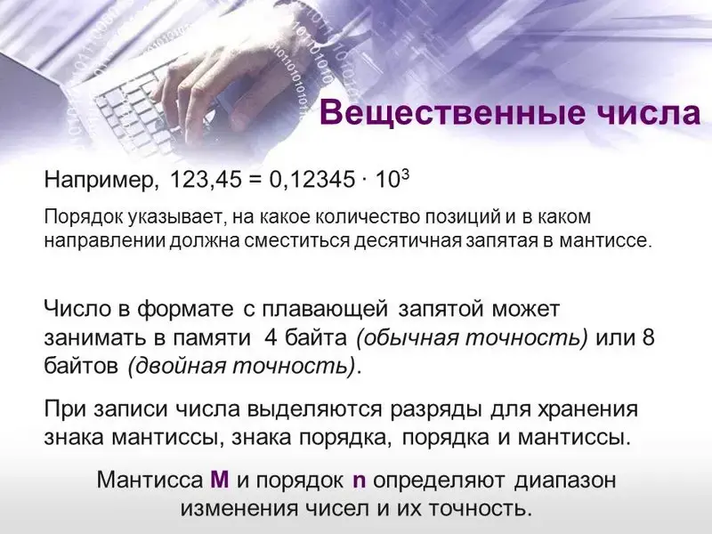 - Представление в памяти компьютера вещественных чисел.