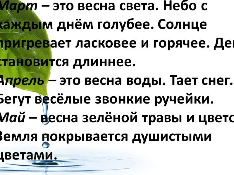 - А теперь давайте прочитаем признаки весенних месяцев.