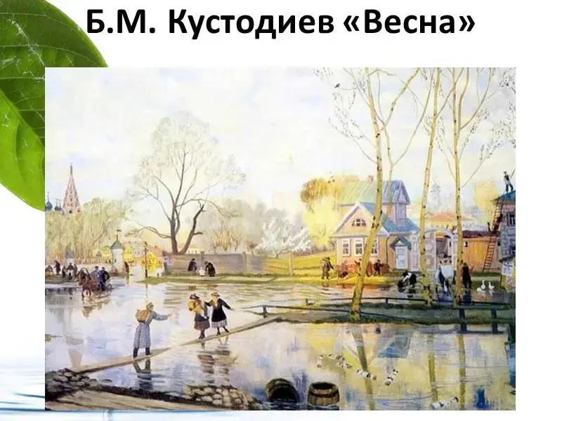 - Рассмотрите репродукцию картины Бориса Михайловича Кустодиева "Весна" (слайд 8)