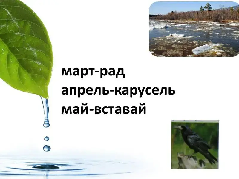 - Подобрать рифму и написать стихотворение достаточно сложное дело, требующее многих качеств: образованности, богатого словарного запаса, умения видеть необычное в обычном. Помните, мы с вами говорили, что народные названия месяцев тоже похожи на произведения искусства. В них точно подмечены и собраны в одном-двух словах особенности изменений в природе, которые происходят в тот или иной месяц. Сейчас мы в этом еще раз убедимся на примере народных названий весенних месяцев.