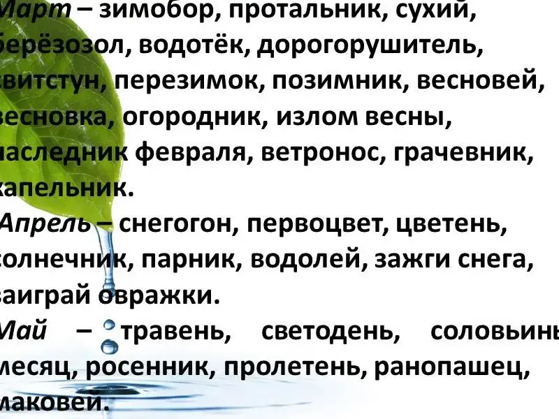 2. приведи примеры народных названий весенних месяцев. (3-4 примера)