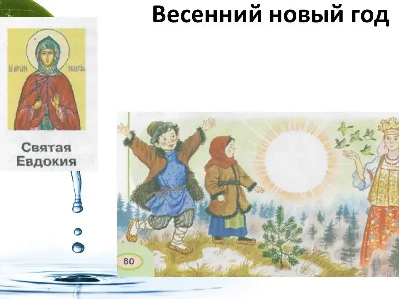 - Когда в старину отмечали весенний новый год? (14 марта в день святой Евдокии) (слайд 11)