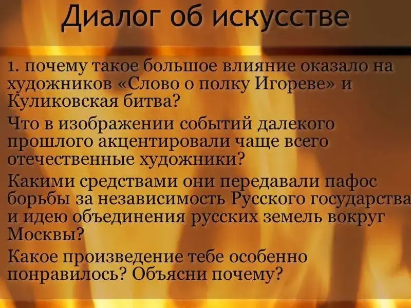 - Почему такое большое влияние оказало на художников "Слово о полку Игореве" и Куликовская битва?