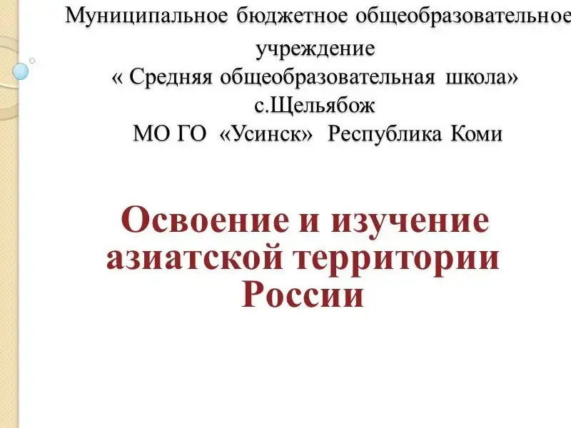 - компьютерная презентация "Освоение и изучение азиатской части территории России".