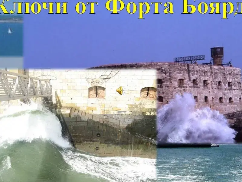 Ведущий: Форт Боярд находится в Атлантическом океане в Бискайском заливе недалеко от города Ла-Рошель. Это не бутафория, а настоящее оборонительное фортификационное сооружение, построенное в XVIII веке по приказу Наполеона на маленьком островке для прикрытия морских подступов к портовым городам Рошфор и Ла-Рошель. В стратегических целях крепость ни разу не применялась, зато долгое время служила местом содержания под стражей политических заключенных. Когда тюрьму перенесли в Новую Каледонию, форт стал одним из памятников французской истории регионального масштаба.
