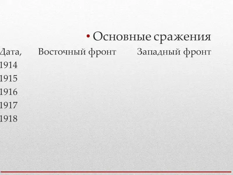 1) Соотнеси фронты и сражения Первой мировой войны: