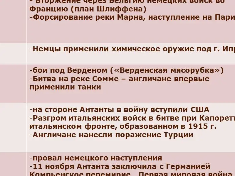 - технологическая карта учащегося по теме "Первая мировая война".