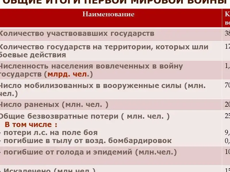 Слайд 18 "Общие итоги Первой мировой войны" - просмотреть.
