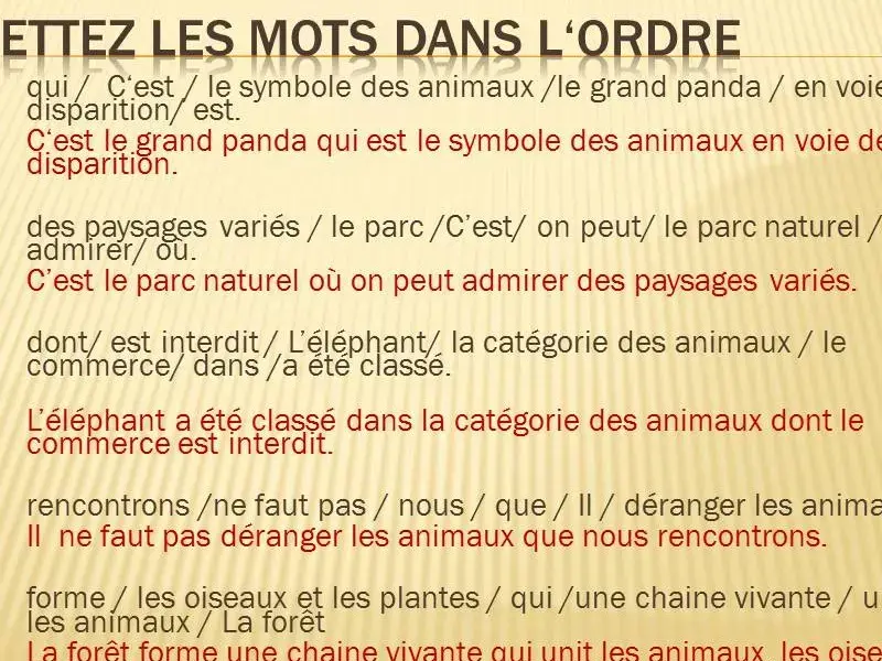 - Mettez les mots dans ľordre (écrivez sur vos feuilles de papier, puis vous les échangez et corrigez, faites les points).(слайд №28)