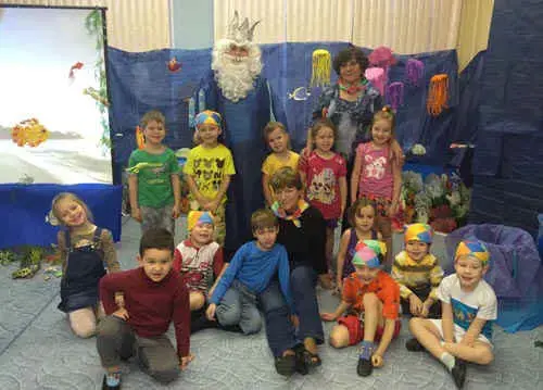 Воспитатель. Царь морской, не гневайся на нас! Мы немного потревожили обитателей морских глубин, чтобы понаблюдать за ними и больше узнать о них.