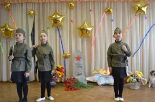 Ведущий: У стен Кремля горит Вечный огонь славы героям, павшим в боях. Мы с благодарностью вспоминаем наших воинов, защитников, отстоявших мир в жестокой битве. Всем защитникам, ветеранам вечная слава!