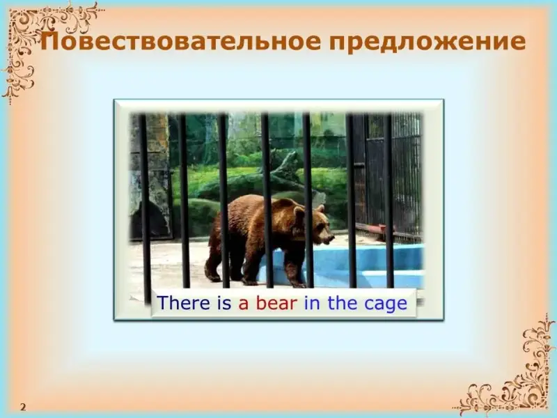 Этот оборот сообщает о наличии неизвестного собеседнику лица/предмета в определённом месте. 1.Предложение начинается с оборота there is/are, далее следует существительное, затем обстоятельство места: There are some pencils in the box. Существительные во множественном числе часто употребляются с неопределёнными местоимениями some, any, many\much, a lot of и с количественными числительными. 2. Скажите по-английски "В классе - ученики" - There are some pupils in the classroom. 3. Если речь идёт о наличии предмета в единственном числе, то выбираем форму глагола is в этом обороте: There is a book on the table. С исчисляемым существительным в единственном числе употребляется неопределённый артикль а 4. Скажите по-английски "В клетке - медведь". - There is a bear in the cage. |