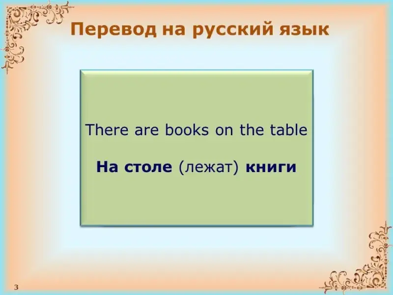 0 -1. Перевод таких предложений начинается с обстоятельства места, причём сам оборот зачастую не переводится: 2. Пример: There is a book on the table. 3. Перевод: На столе (лежит) книга. |