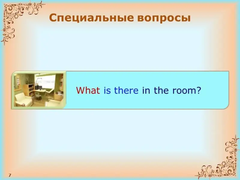 Специальный вопрос задаётся с целью получить полный ответ на интересующий вопрос. В предложениях с оборотом there is/are мы можем спросить о предмете и его месте нахождения примерно