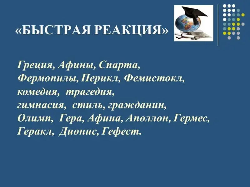 - Сейчас вашему вниманию будут названы предметы. Ваша задача по ним вспомнить миф, назвать героев и передать его содержание.