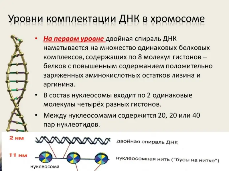 - Объяснить 4 уровня комплектации ДНК в хромосоме.