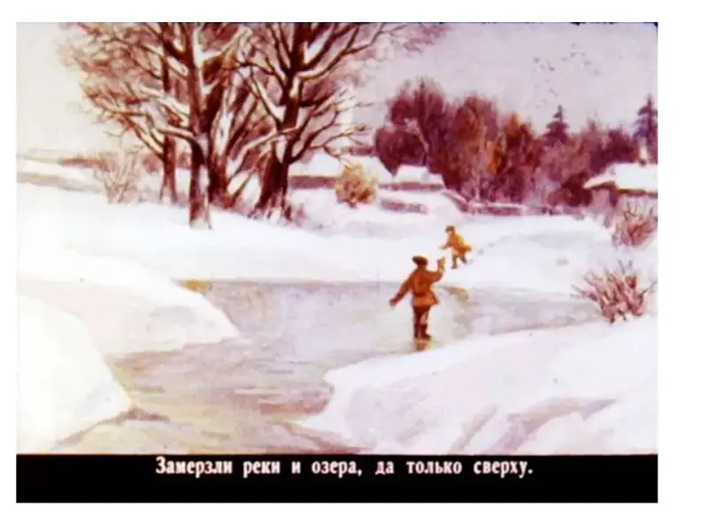 - Что случилось с реками, озерами? (Замерзли реки и озера.)