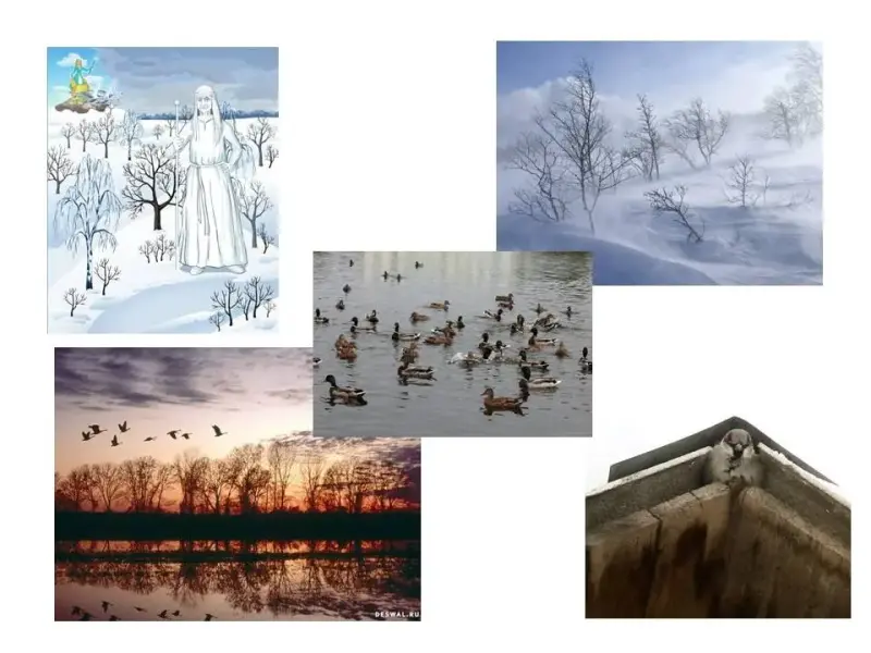 - Разозлилась старуха - зима, задумала всех со света сжить. До кого она добралась сначала? (- До птиц.)
