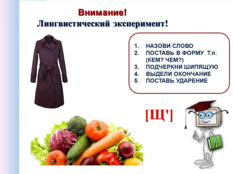 На экране вы видите картинки. Ваша задача назвать слово, оканчивающееся на шипящий, и поставить его в форму Т.п.