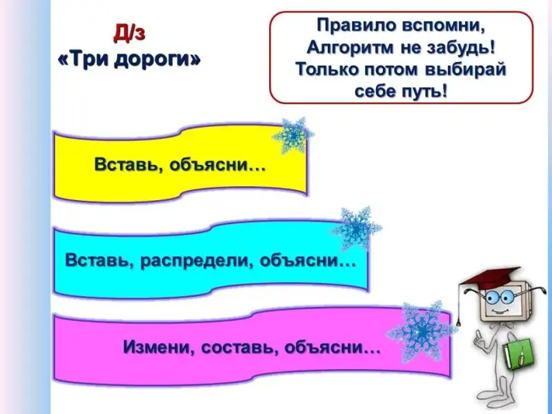 В сказке перед героем всегда стоит выбор, он выбирает дорогу, по которой пойдёт. Я тоже предлагаю вам на выбор три варианта домашнего задания.