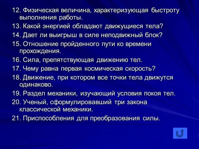 11. Физическая величина, определяющая быстроту выполнения работы?