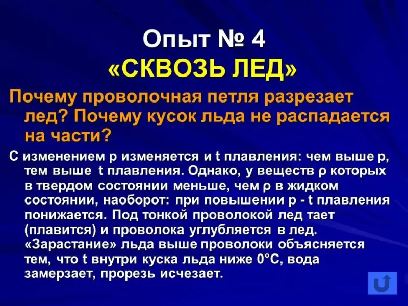 Почему проволочная петля разрезает лед? Почему кусок льда не распадается на части?