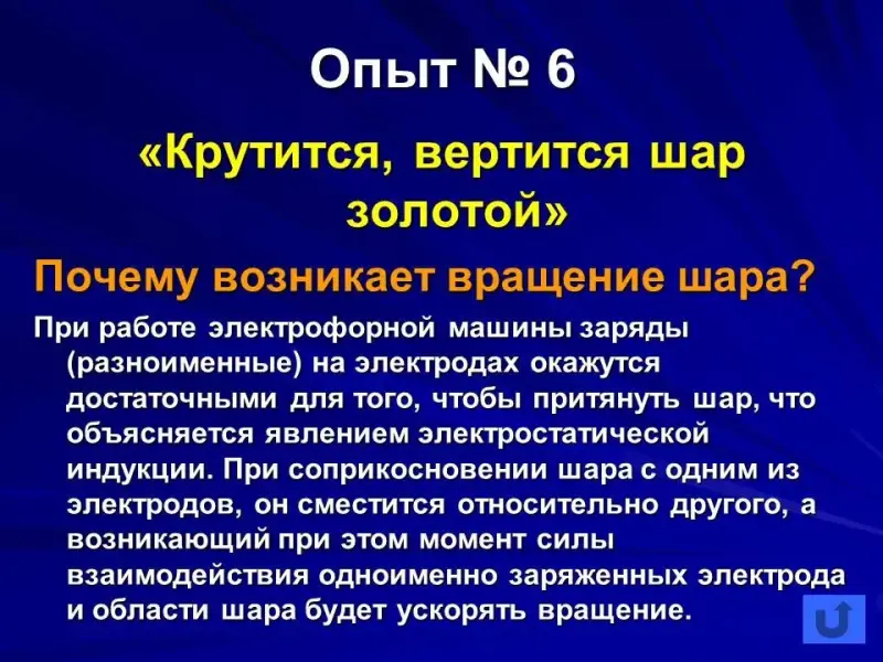 6 опыт "Крутится, вертится шар золотой" (слайд № 37)