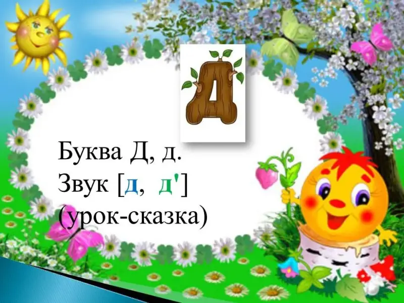 Согласная буква "д"; звонкий (мягкий и твёрдый) согласный звук; предложение; рассказ; слова с противоположным значением, пословица