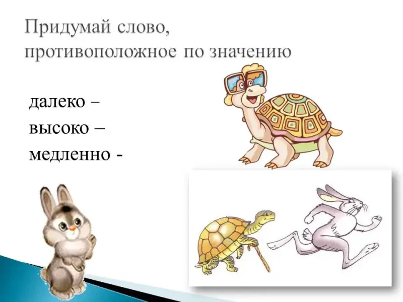 - Прочитайте слова. Придумайте недостающее слово, противоположное по значению.