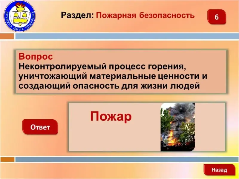 - На станции "Пожарный лабиринт" участникам предлагаются загадки и игра "Обезопась пожароопасные слова" в которой ученики, пользуясь подсказками, превращают предложенные "пожароопасные" слова в "безопасные" путём замены, добавления или исключения всего лишь одной буквы в них. (Приложение 5)