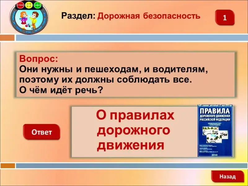 - На этапе игра "Безопасность и мы" отвечают на вопросы (30 вопросов), которые они выбирают сами из предложенных тем. (Приложение 3)