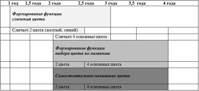 Формирование цветового восприятия в онтогенезе проходит несколько этапов