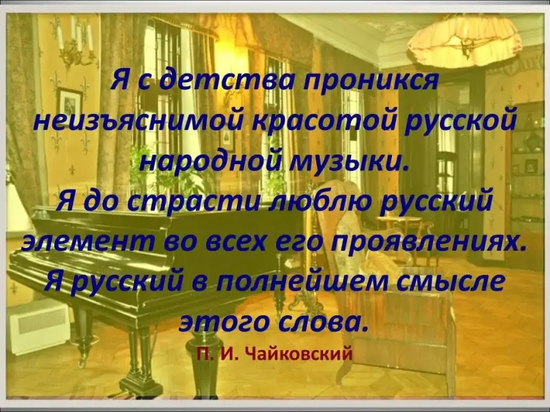 "Описывать - дело живописи, поэзия также может себя считать в этом отношении счастливой по сравнению с музыкой, ее область не так ограничена, как моя. Но зато моя простирается гораздо дальше в иные сферы, и на мои владения не так-то легко посягнуть. Музыка - это откровение более высокое, чем мудрость и философия. Музыка должна высекать огонь из души человеческой. Музыка - народная потребность". Людвиг Ван Бетховен. Давайте послушаем музыку П. И. Чайковского и познакомимся с теми стихами, которые нам предстоит сегодня анализировать.