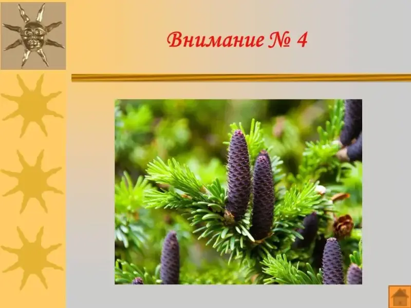 Внимание на экран: Это хвойное дерево, произрастает в некоторых регионах России, в т.ч. на Кавказе. Это идеальное дерево для Новогоднего праздника, а также бумажной промышленности, т.к. у него отсутствуют постоянные смоляные каналы, а значит, не выделяется пачкающая липкая смола. Шишки этого дерева примечательны не только вертикальным расположением, но и долговечностью: в ботанических коллекциях они редкость.