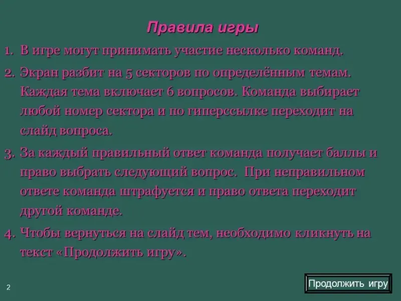 2. Сообщение правил игры. Слайд 2.