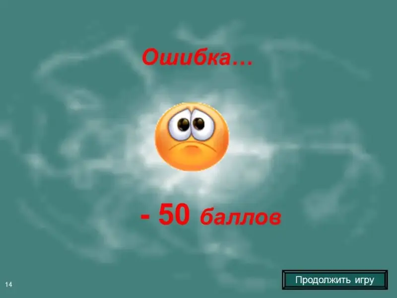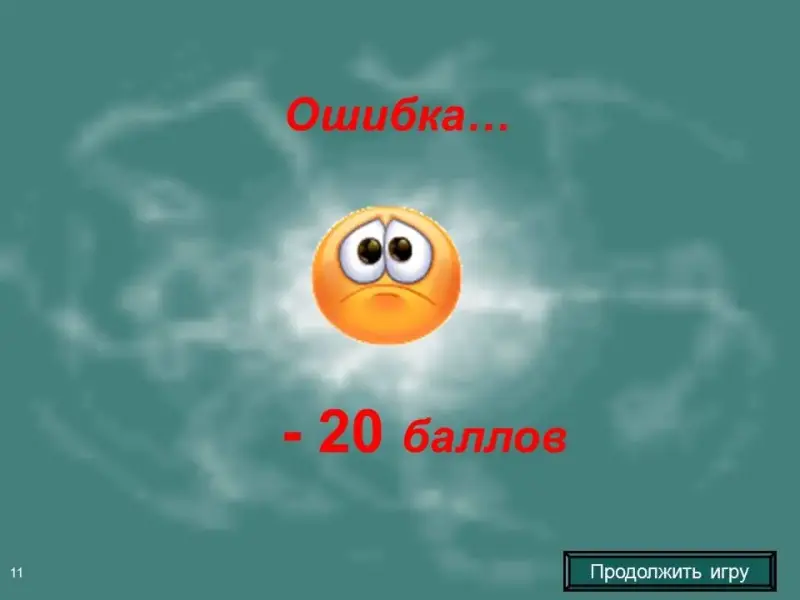 • При неправильном ответе команды баллы вычитаются, и право ответа переходит другой команде.