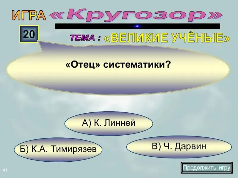 Слайд 41. Вопрос на 20 баллов. "Отец" систематики: