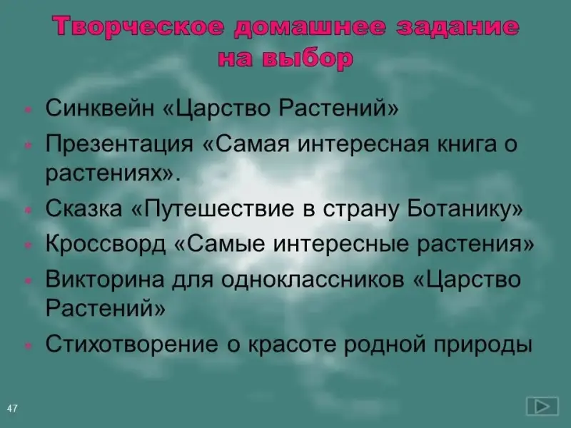 Слайд 47. Творческое домашнее задание на выбор: