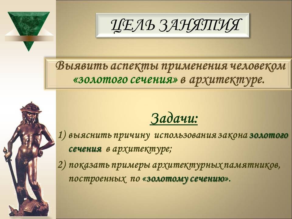 - формирование у учеников навыков составления математических моделей фундаментальных закономерностей различных видов искусства, архитектуры, музыки;