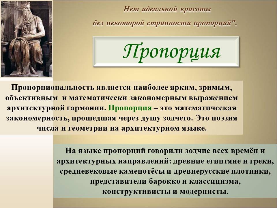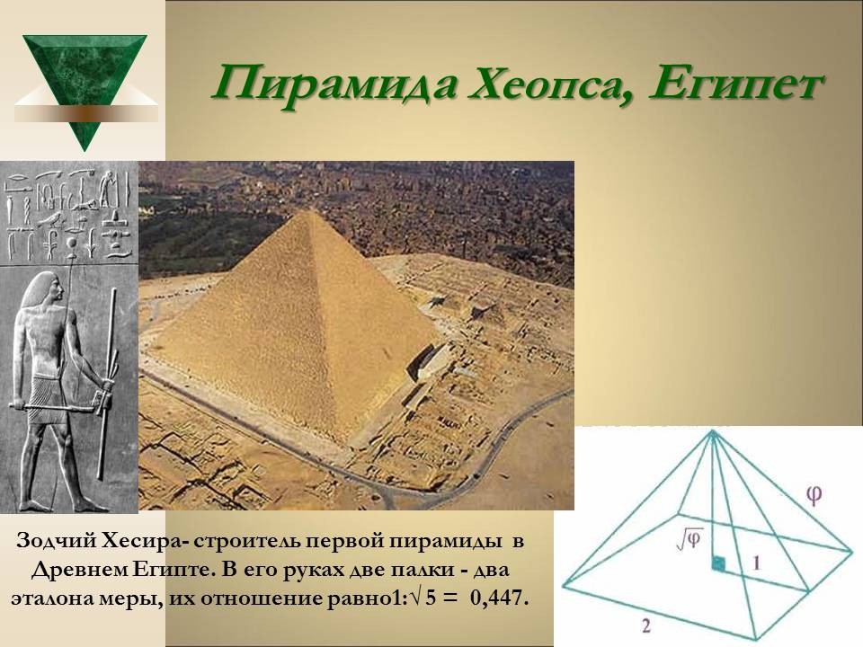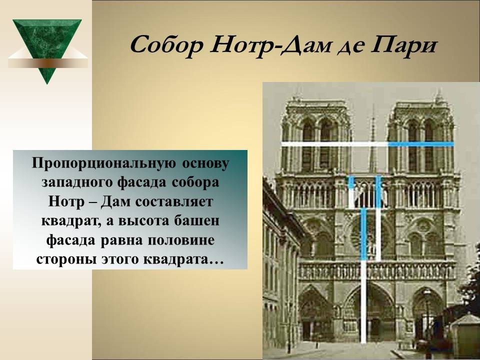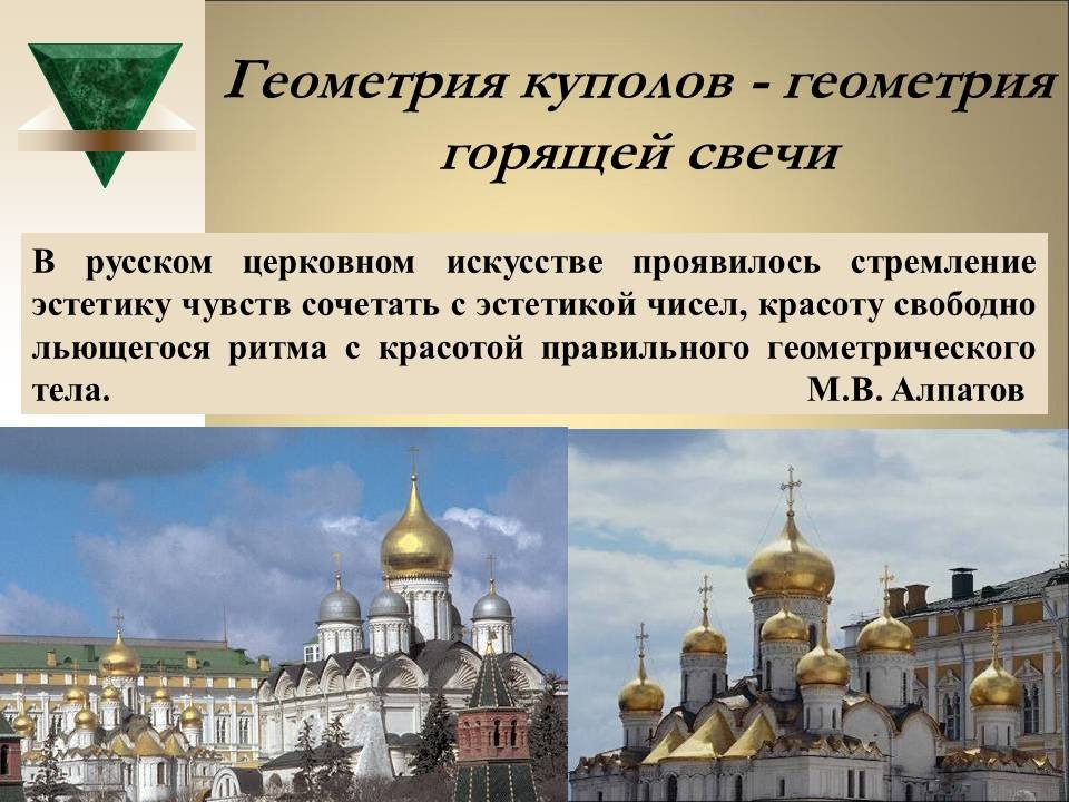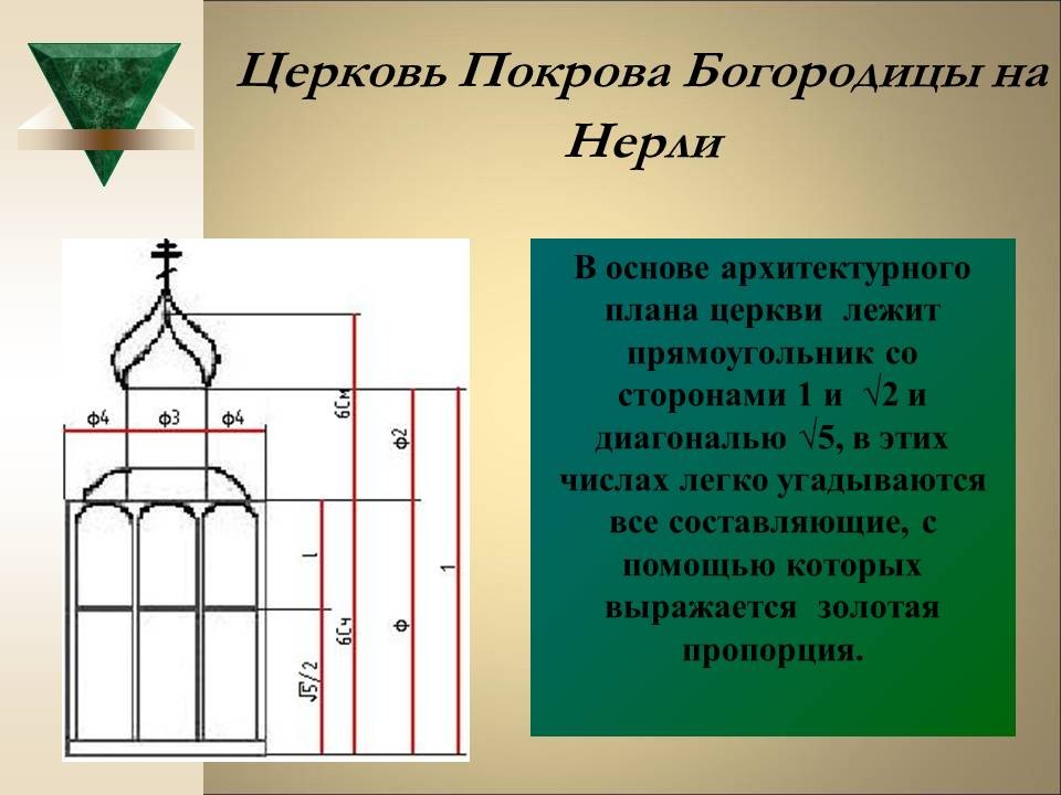 | 8. | Геометрия архитектурной гармонии | 2 | Понятие “золотого сечения”. Ряд Фибоначчи. “Золотое сечение” в окружающем мире, архитектуре и искусстве. | Исследование числовых закономерностей ряда Фибоначчи. Исследование объектов окружающего мира, произведений искусства и архитектуры на наличие “золотого сечения”. |