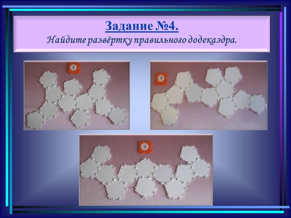 - мультимедийные средства обучения: демонстрационный материал к занятиям по темам: “Математика и искусство”, “Симметрия в живой и неживой природе”, “Орнаменты и бордюры”, “Построение орнаментов и бордюров”, “Паркеты: правильные, полуправильные”, “Искусство оригами в помощь математике”, “Изящество и красота мира фракталов”, “Перспектива – геометрия живописи”, “Тайны золотого сечения”, “Золотое сечение” в архитектуре, “Музыкальная гармония пропорций”, “Многогранники”, “Модели многогранников” (презентации 1–13);