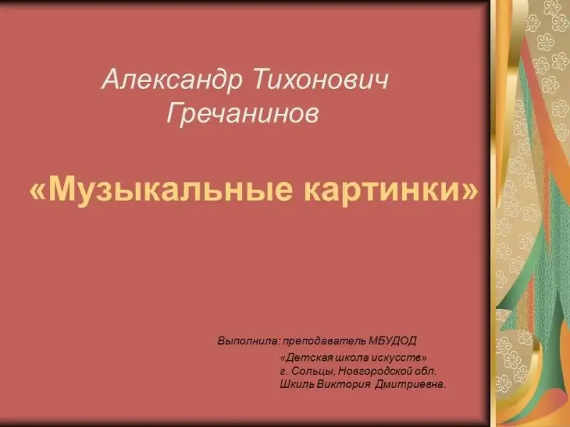 Слайд-концерт, посвященный творчеству композитора А.Е. Гречанинова «Музыкальные картинки»
