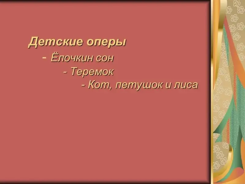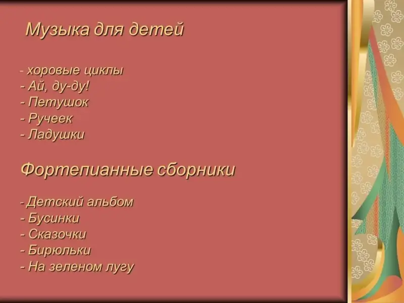 (Слайд 29). В музыку предназначенную для детей вошли хоровые циклы: